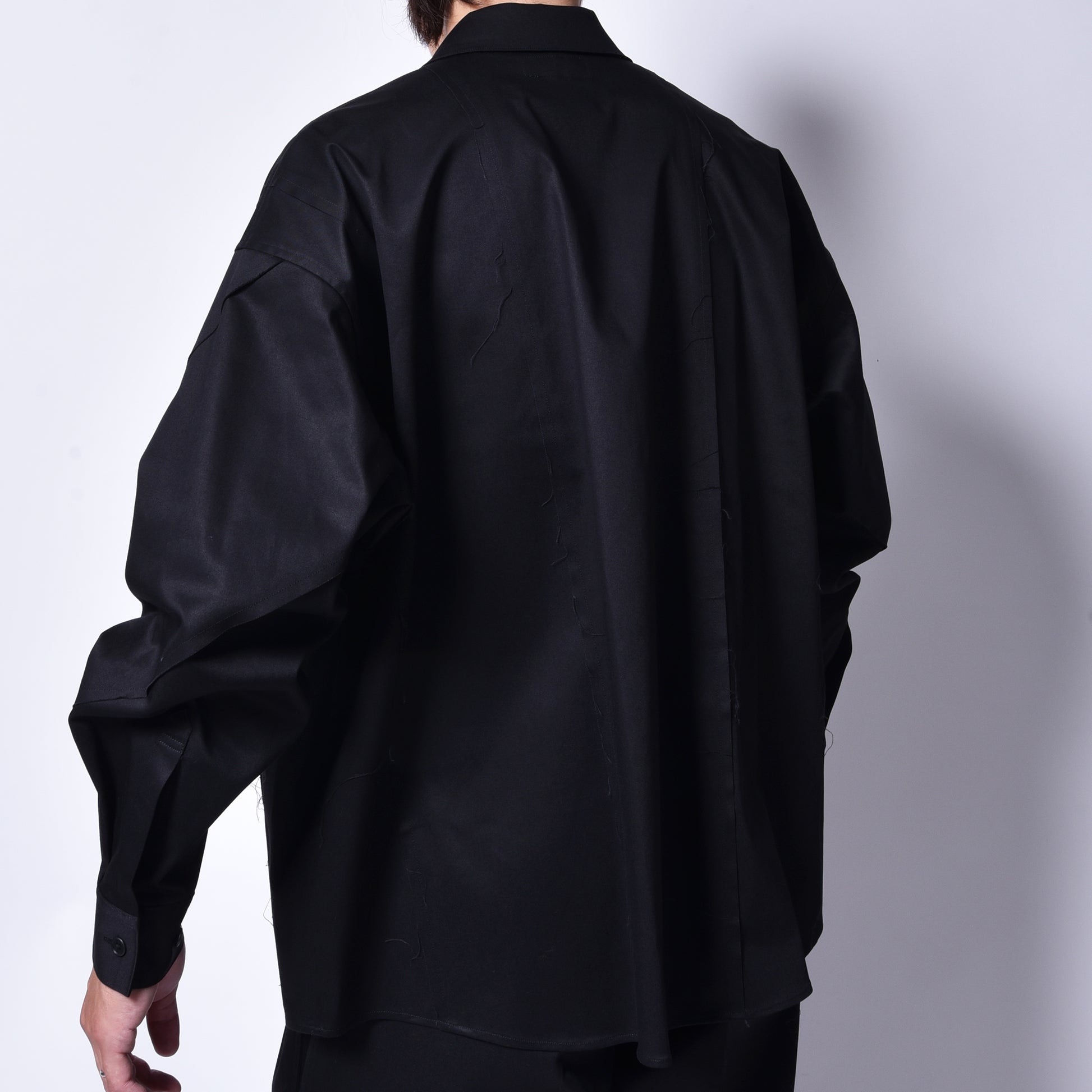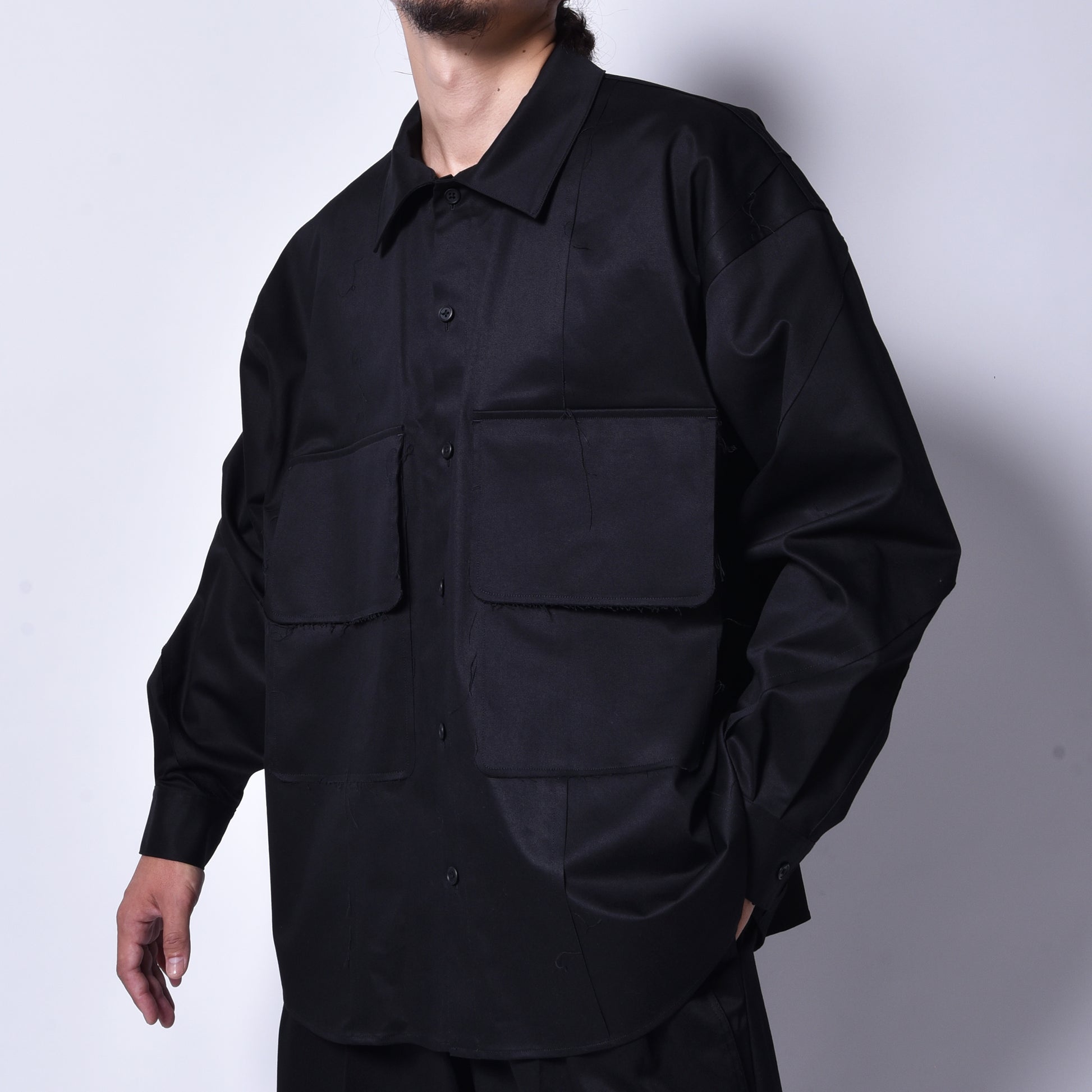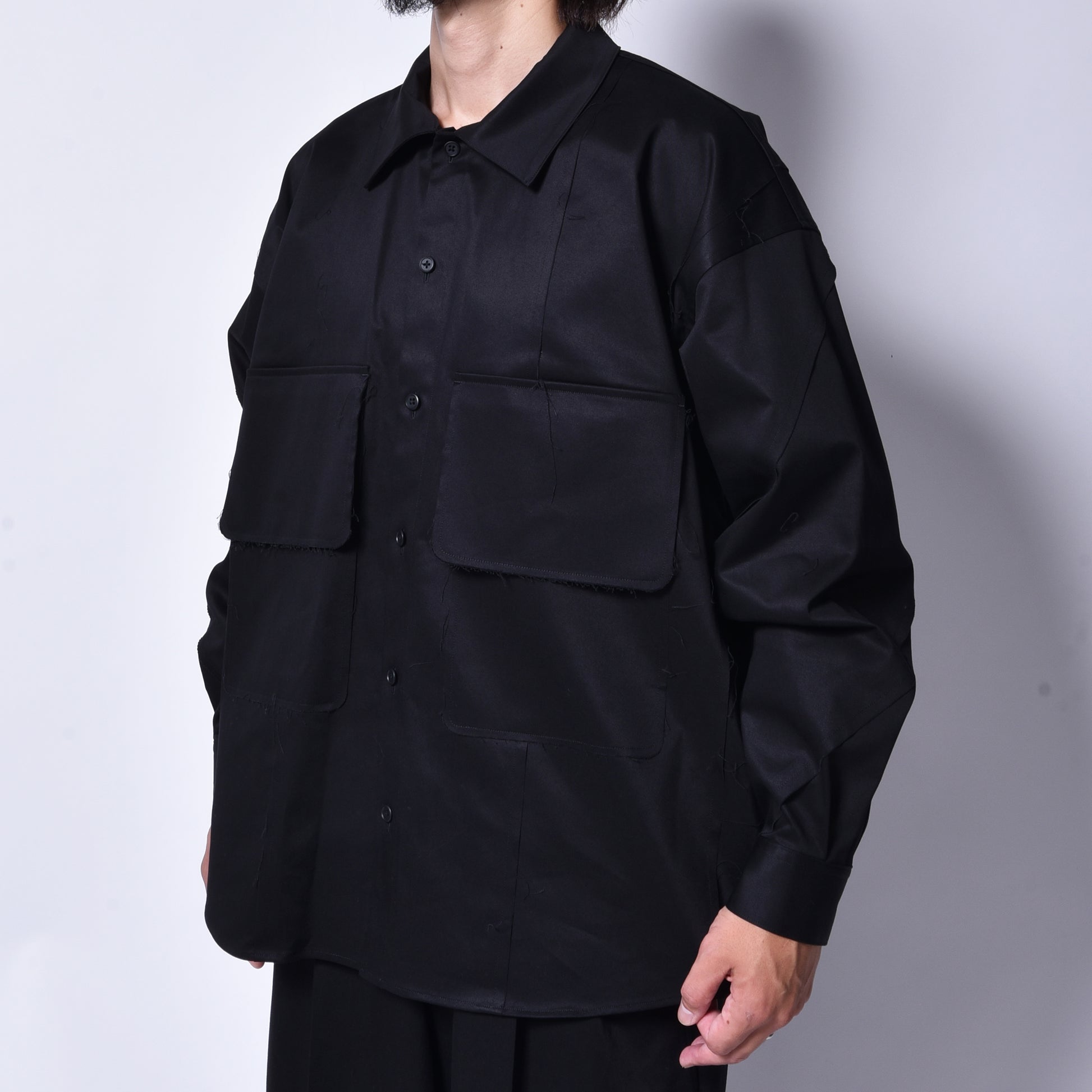 シルエットは、太すぎないアームラインに、計算されたボックスシルエット、フラップ付きの胸ポケット、切りっぱなしの切り替えラインを交えた独特のフォルムになります。