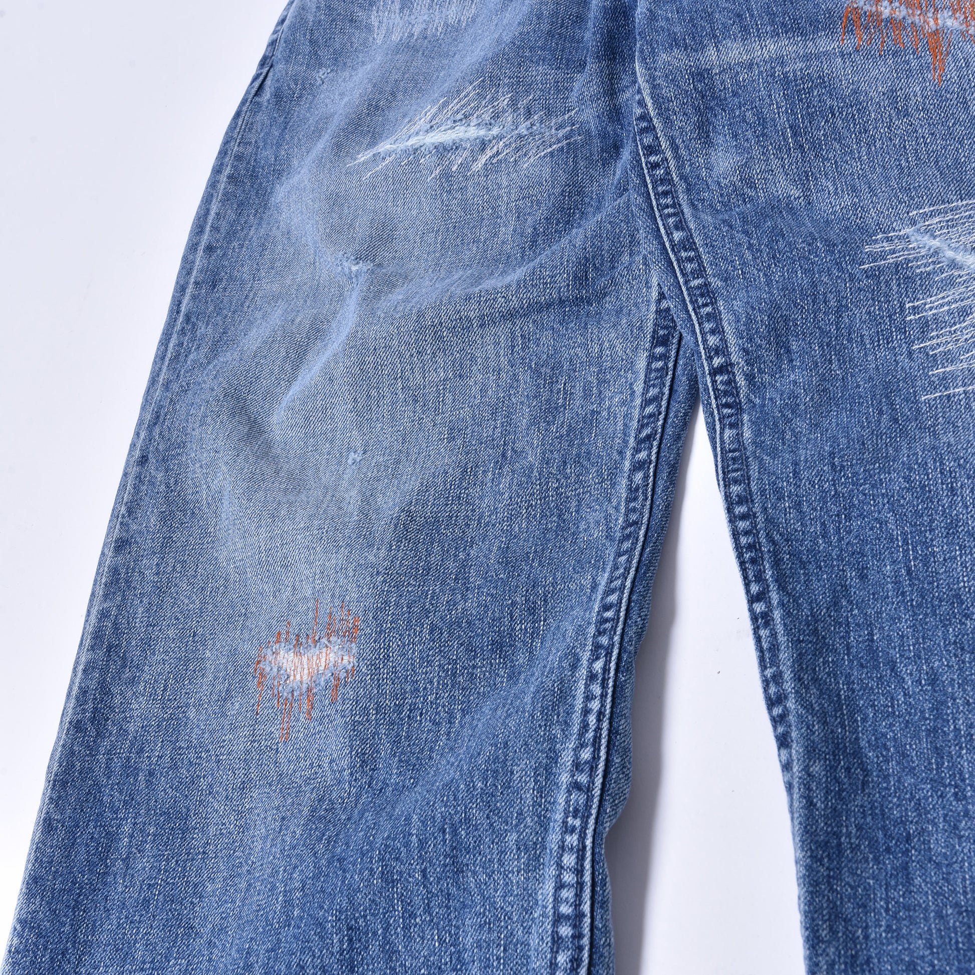 This rin denim is considered to be a finished product with a lot of processing, but in the end, it is thought that it will only be completed after being worn by each person who wears it. I hope that the final step will be one finished in your own color.