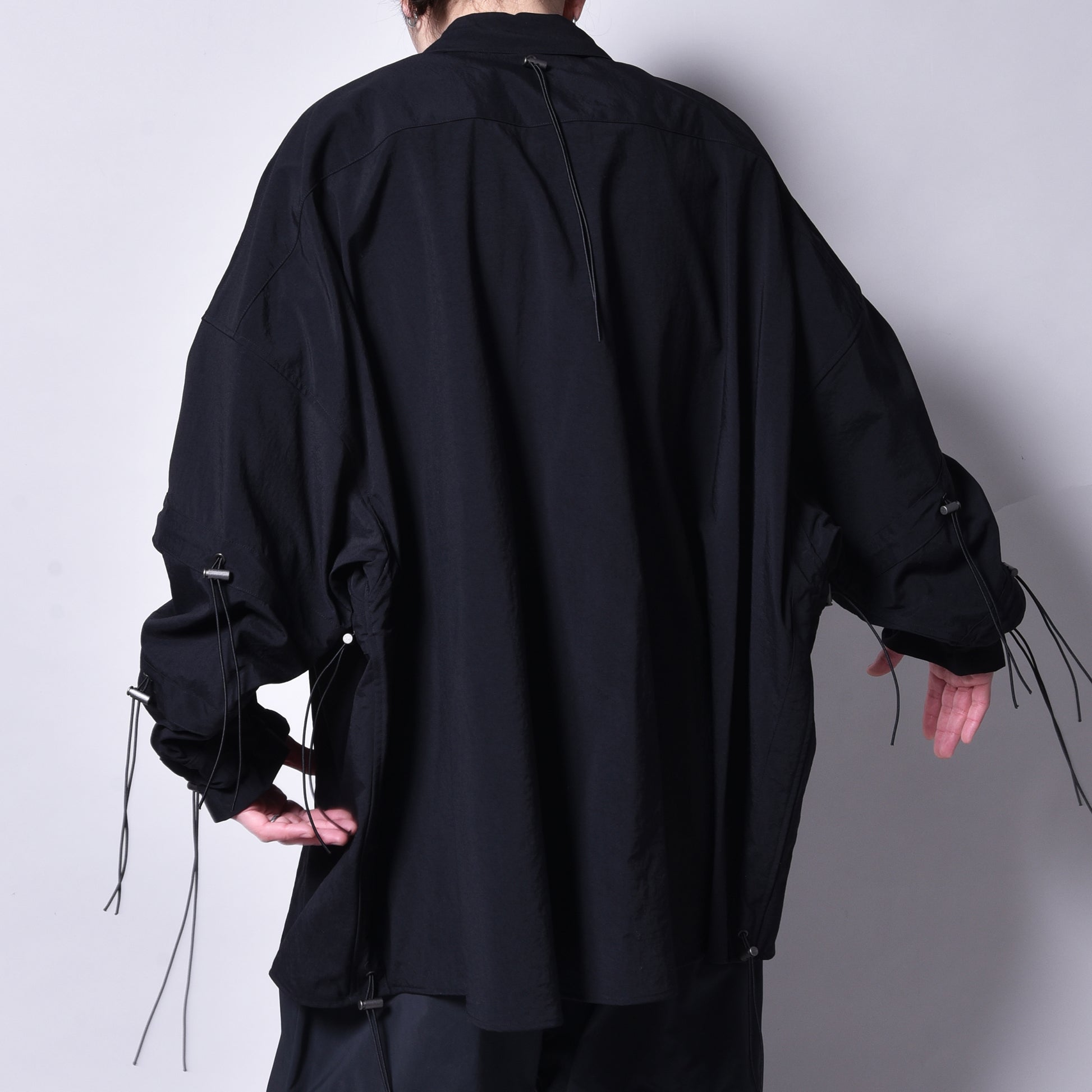 袖のコードでサイズ調整可能で、身頃のコードや裾部分のコードで身幅や丈のサイズ調整可能な使用になります。
