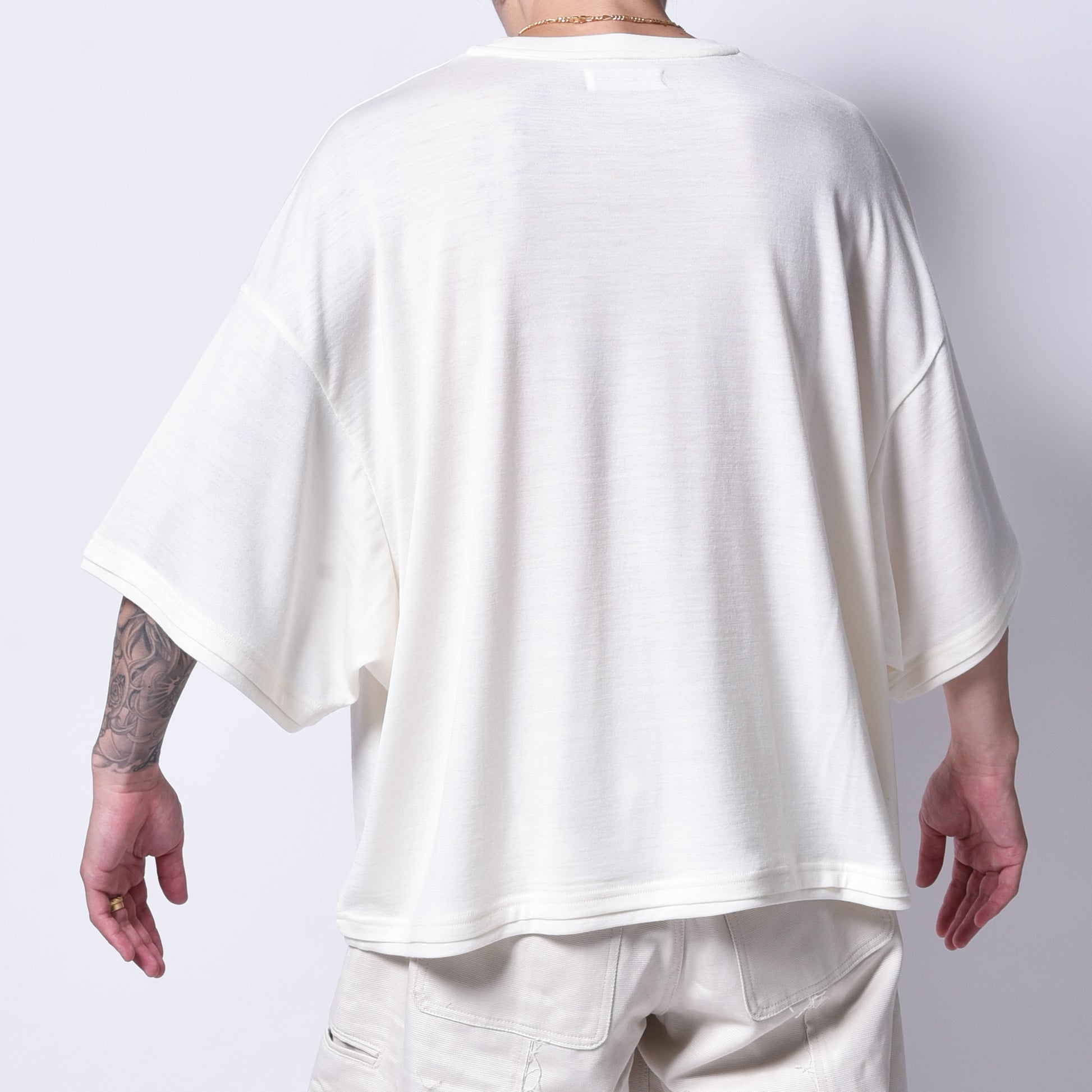 シルエットはrinの名作シルエットで制作してあります。カラーもウール特有のホワイトになります。また素材が変わればよりシルエットに動きが出てさらに良さが伝わる1着です。