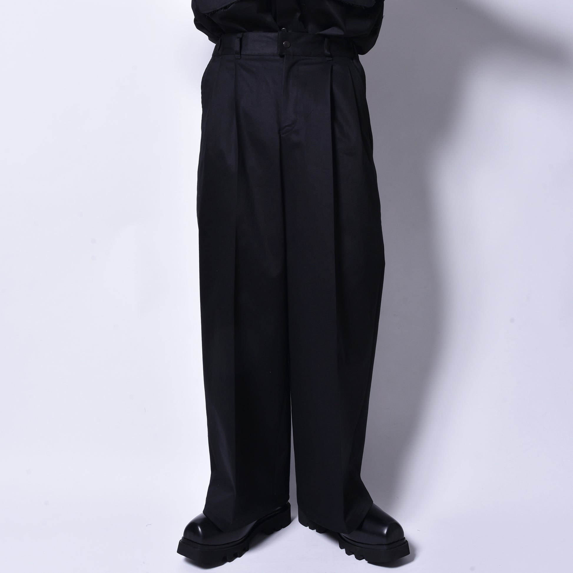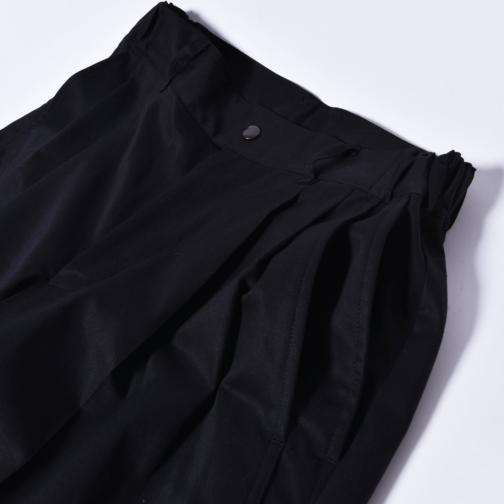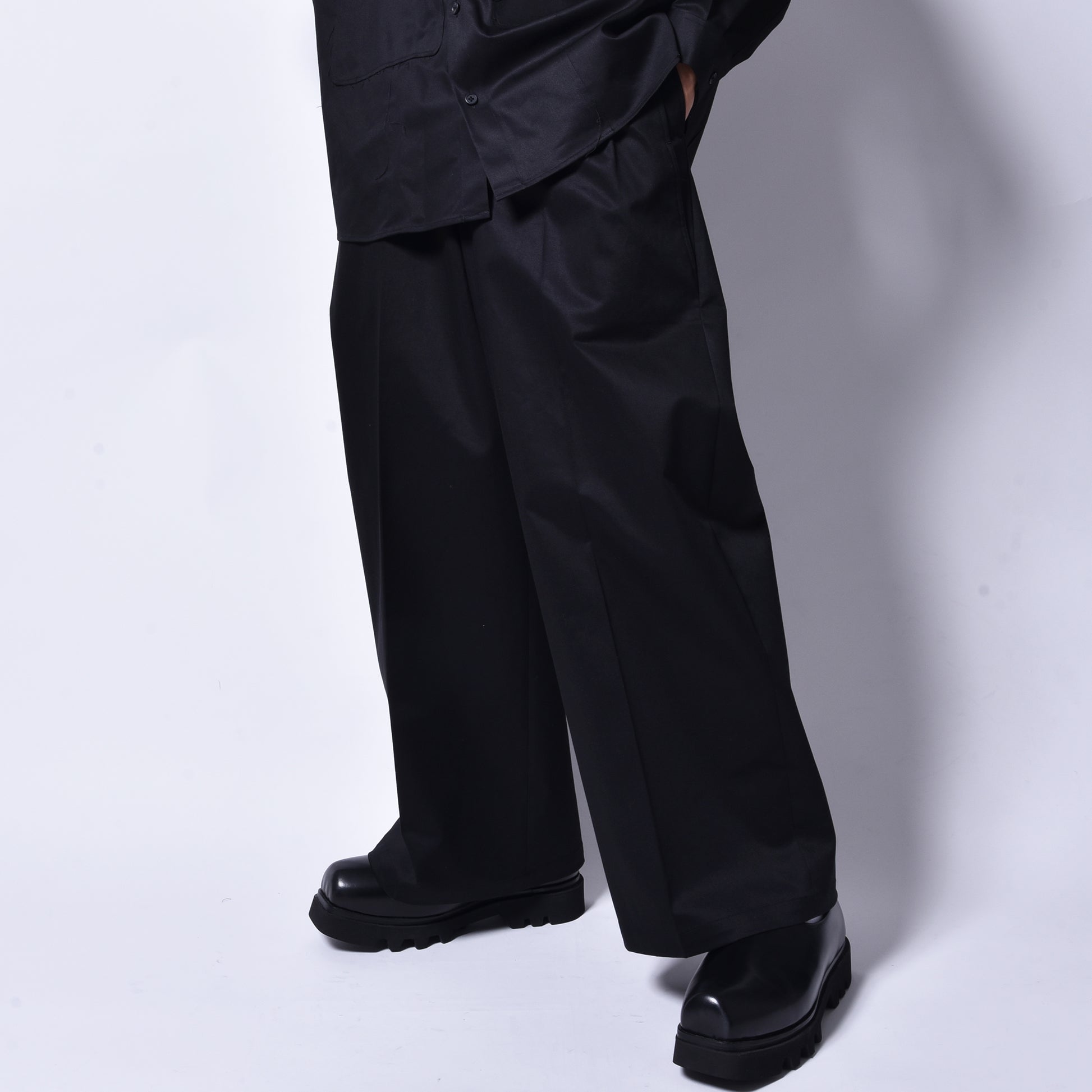 シルエットはサイドポケットが二つあり、2タックのワイドスラックスパンツです。