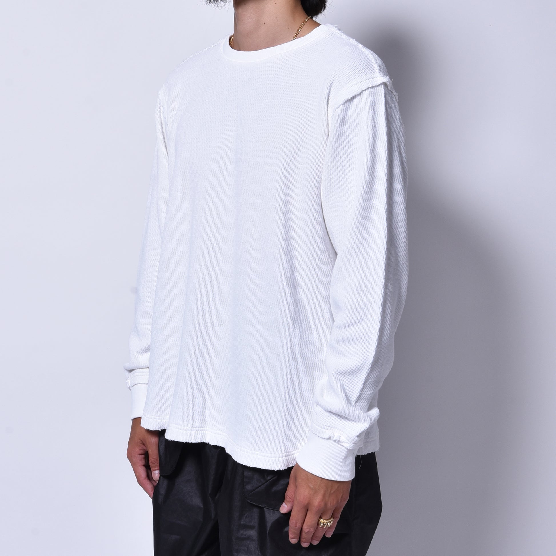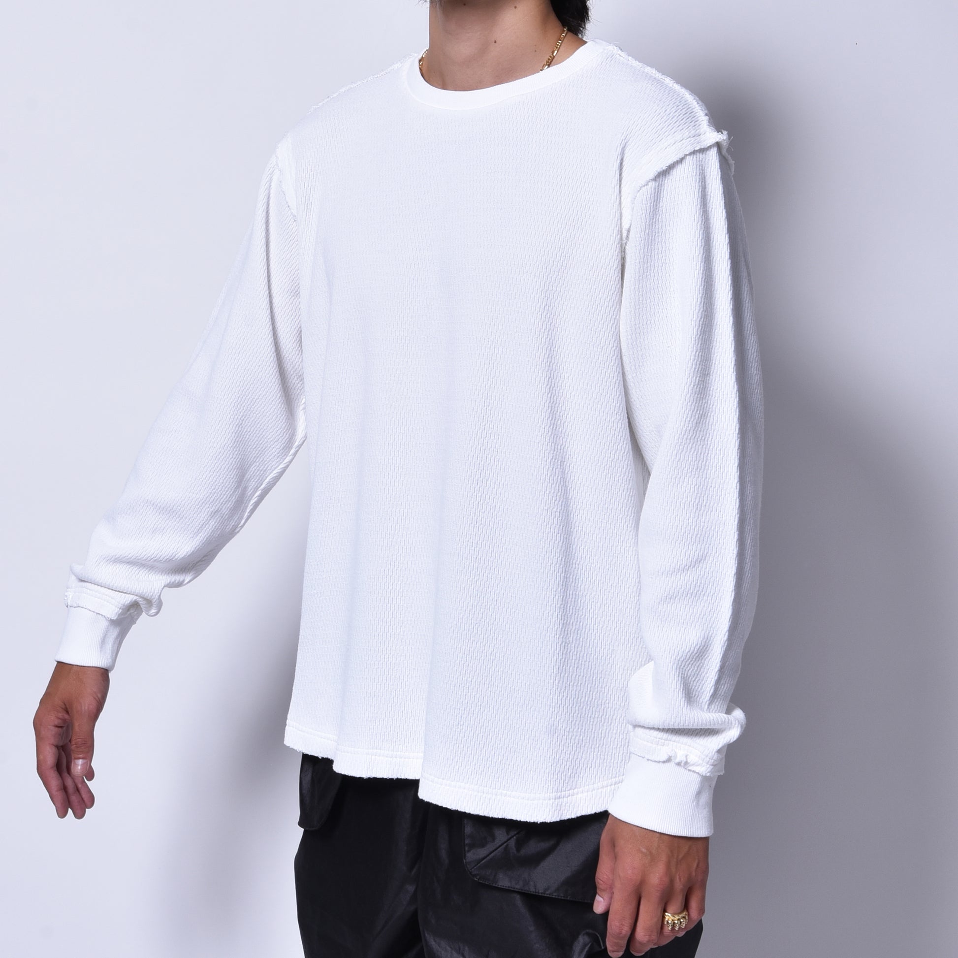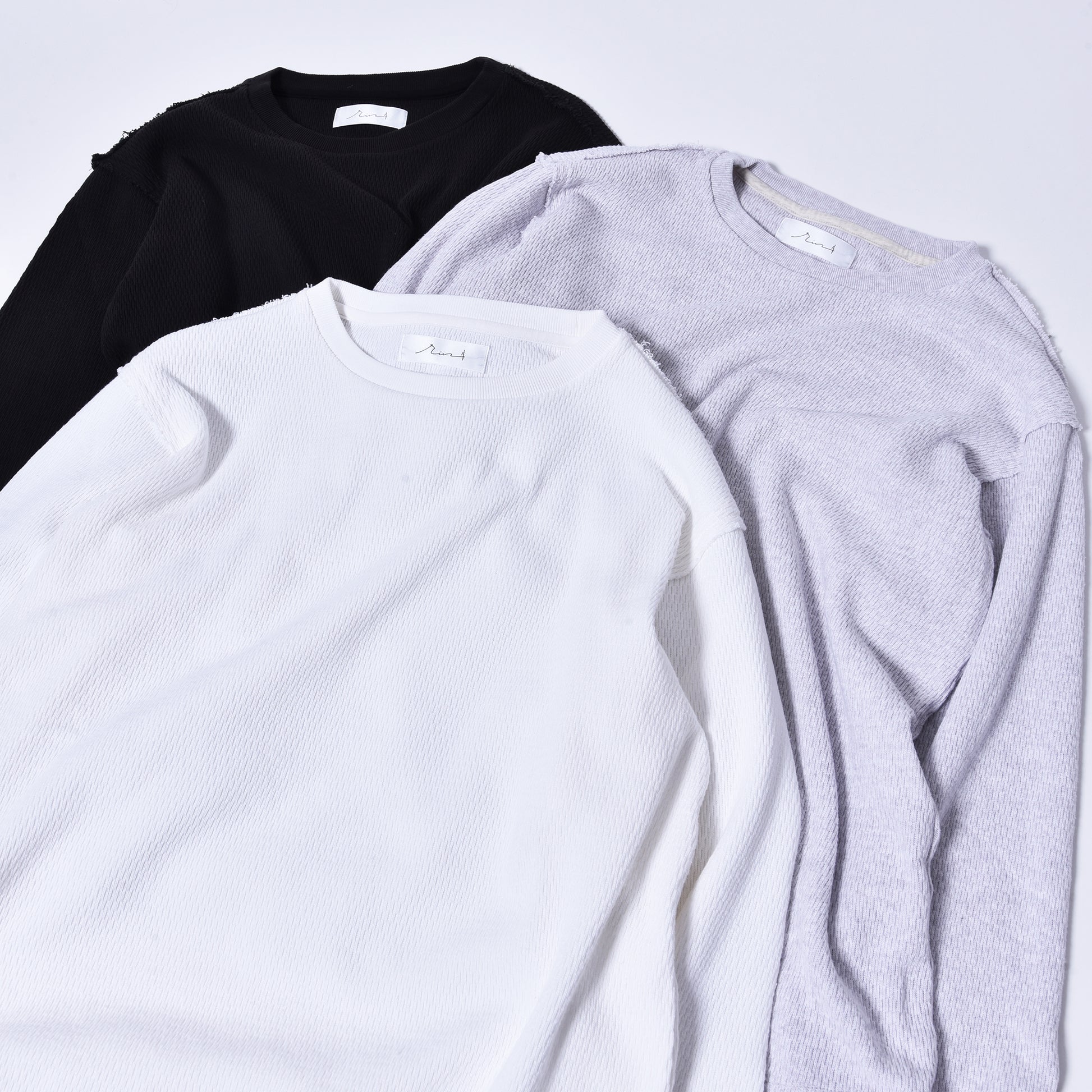 素材は、太番手の糸を使用して編み込まれた度詰めのサーマル生地です。