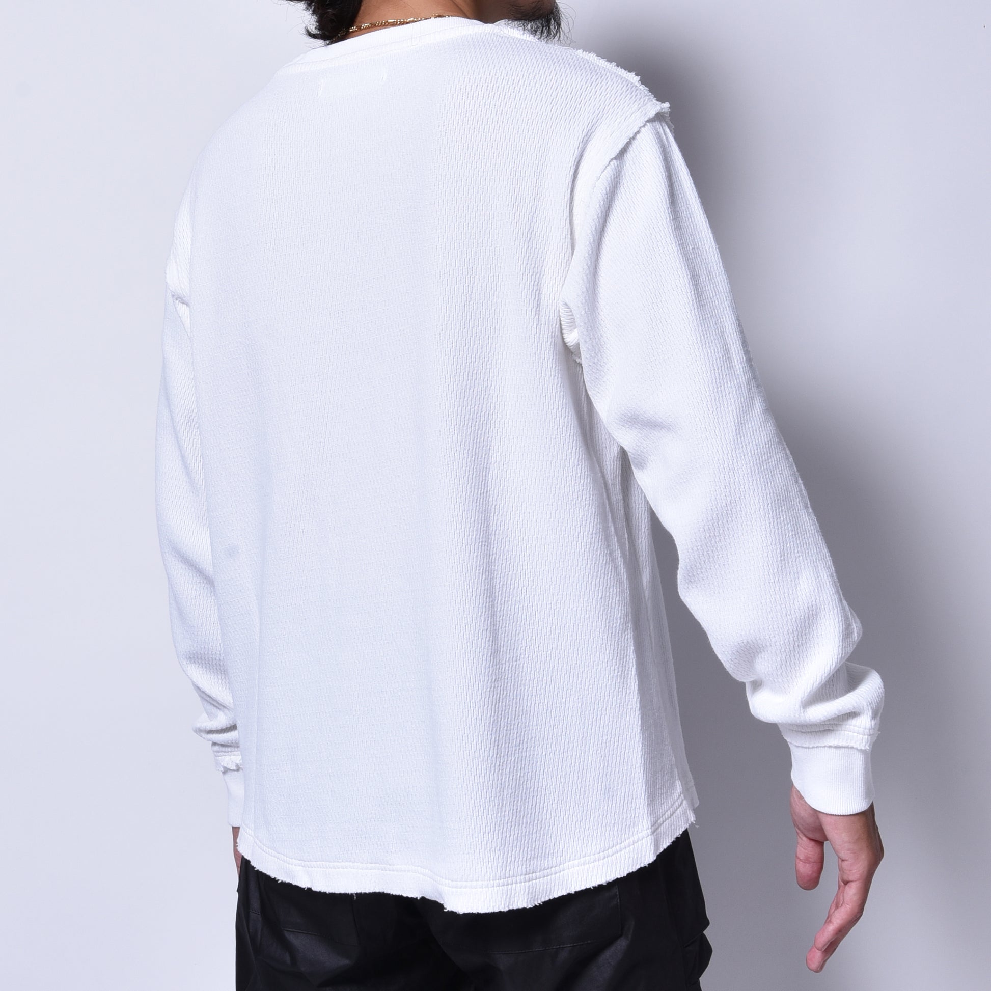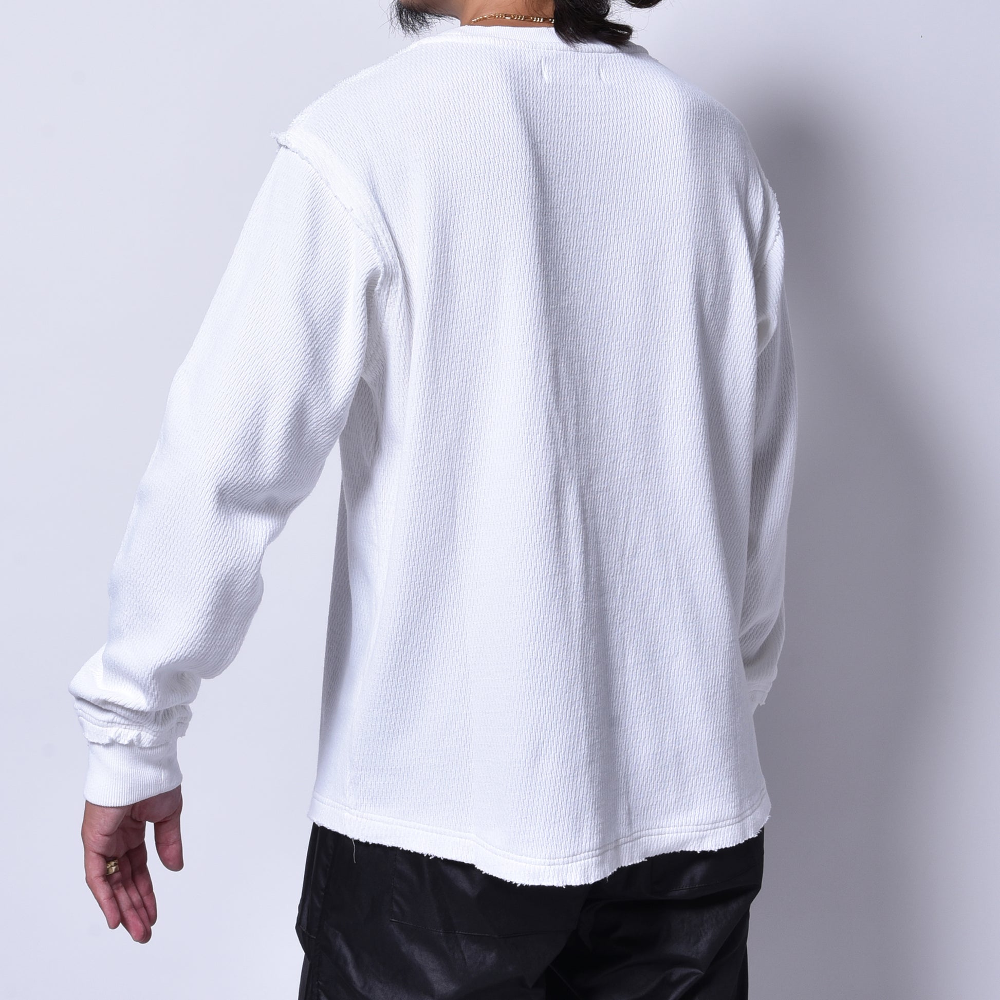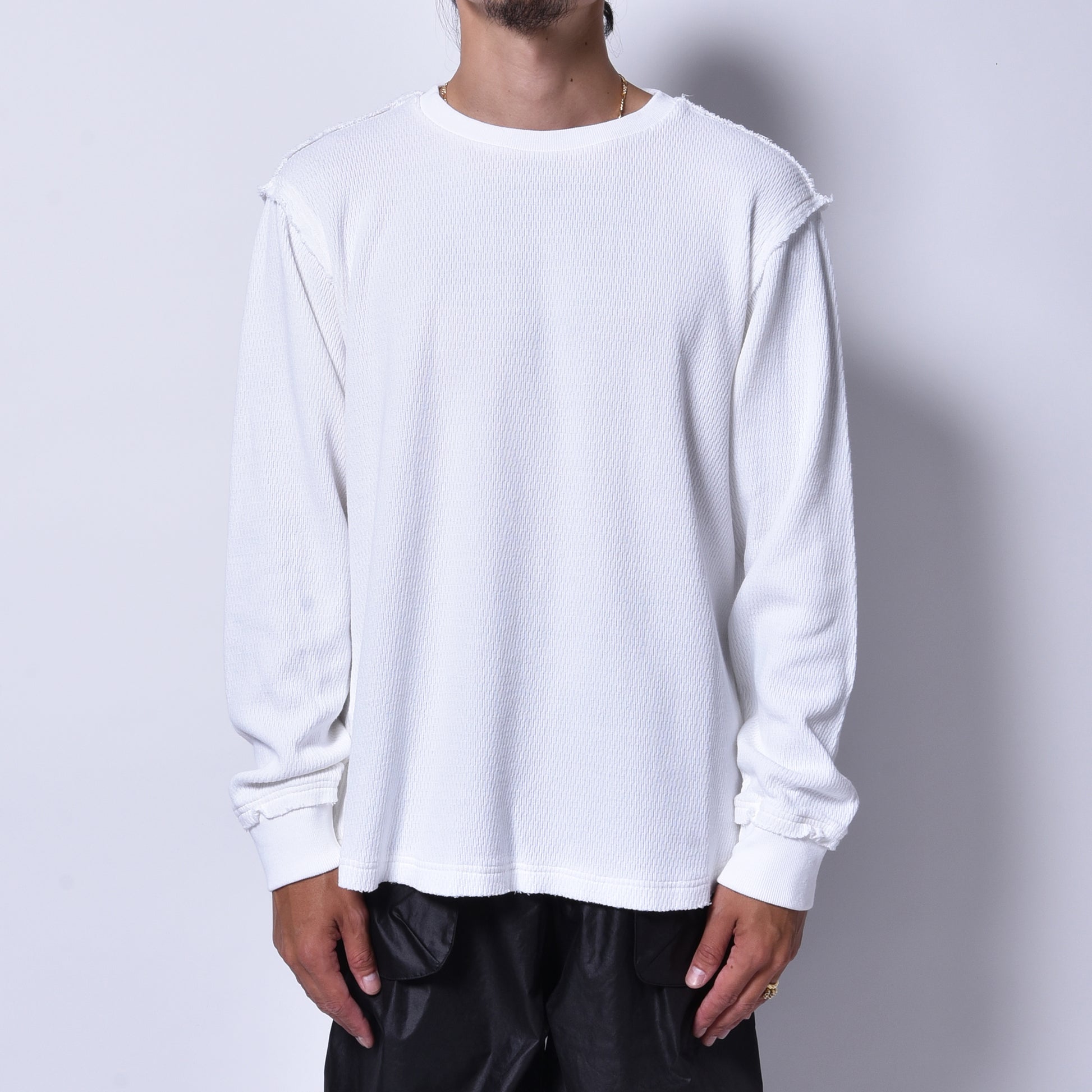 素材は、太番手の糸を使用して編み込まれた度詰めのサーマル生地です。