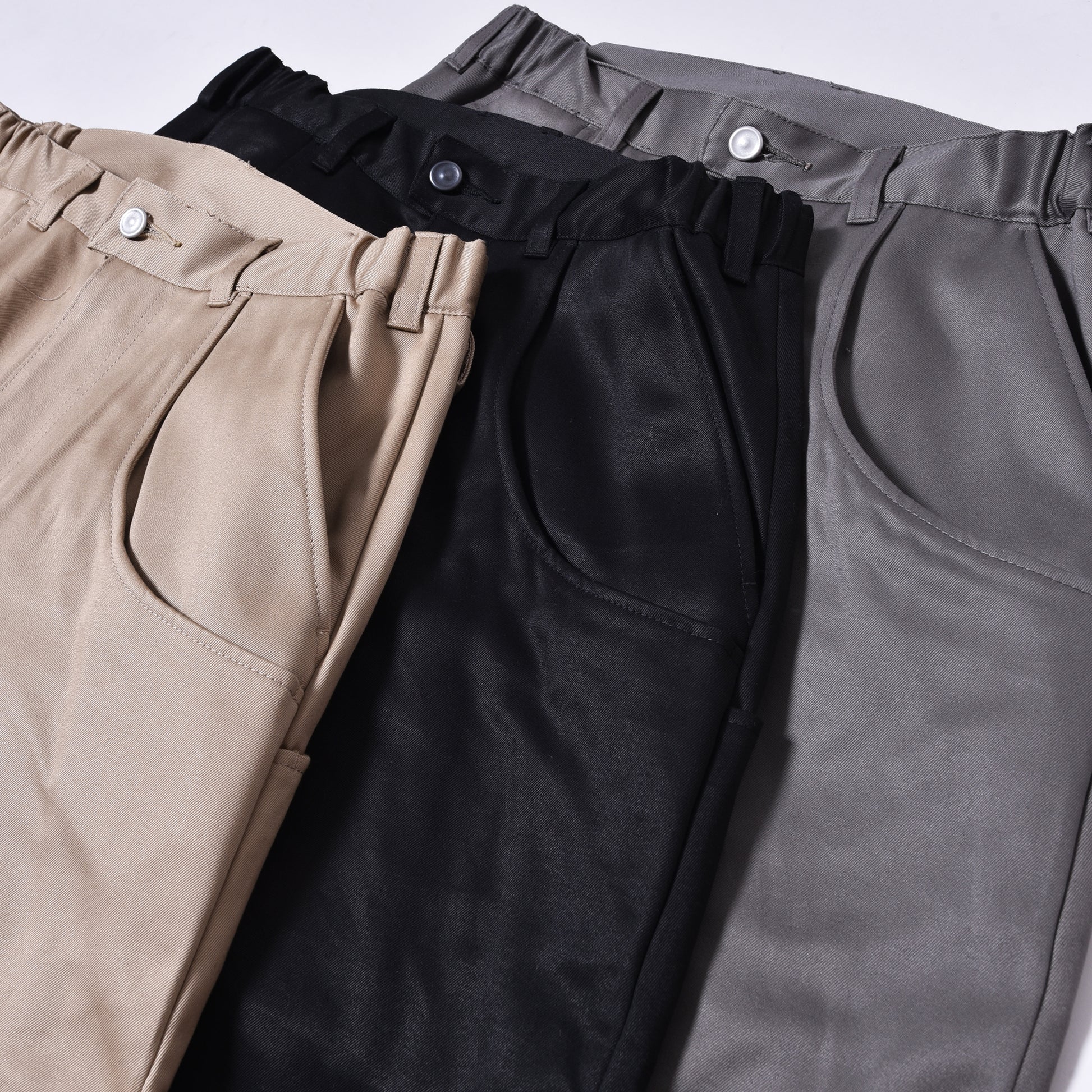 シルエットは太すぎない程よい緩さがあるアーチラインを描いたシルエットです。無駄をなくす事で脚長効果のラインになります。ポケット収納も多く、ウエストサイドゴム入りの為ストレスなく履ける極上の1本。是非この機会に愛用頂ける一本をお見逃しなく。