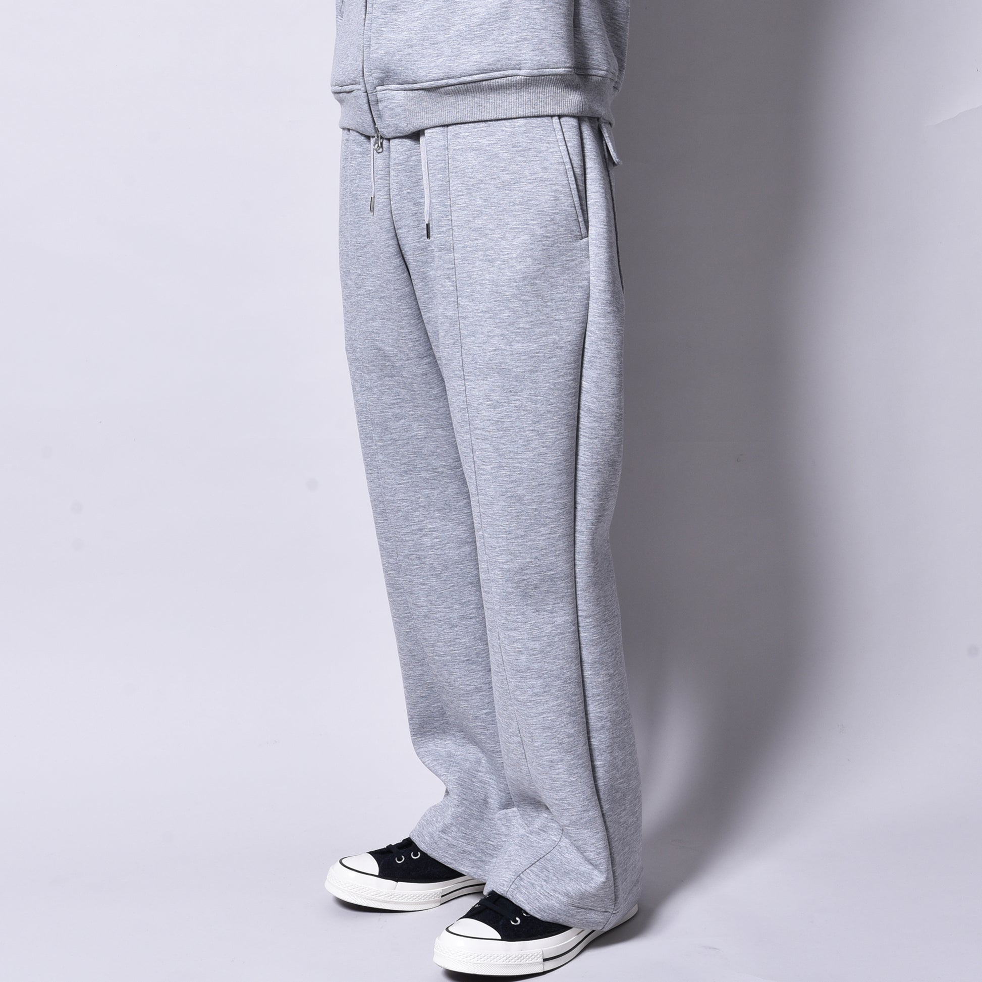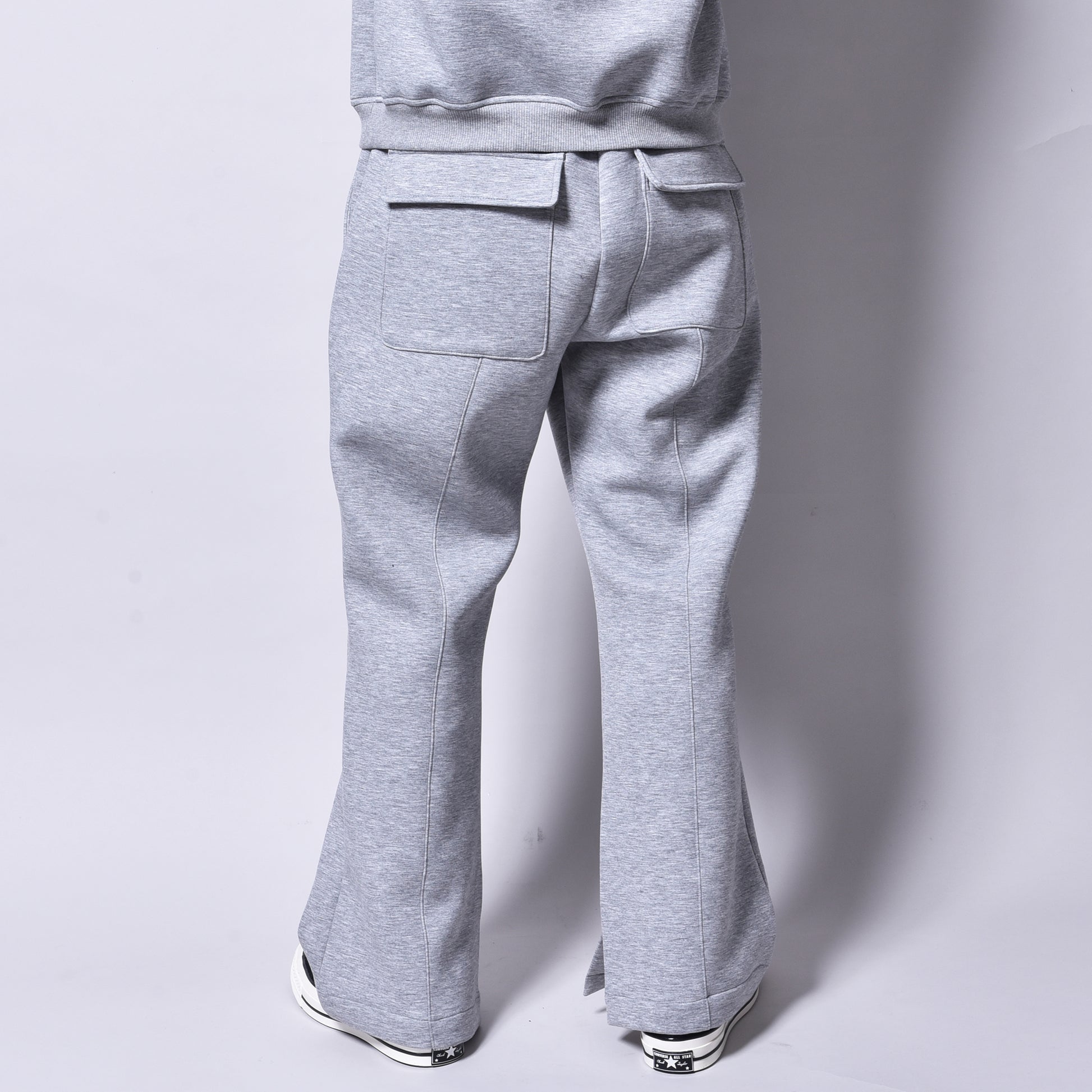 シルエットは動きやすさを重視したストレートフレアなシルエット。ウエストはゴムシャーシ仕様のためストレスなく履けます。裾口にスリット入り。