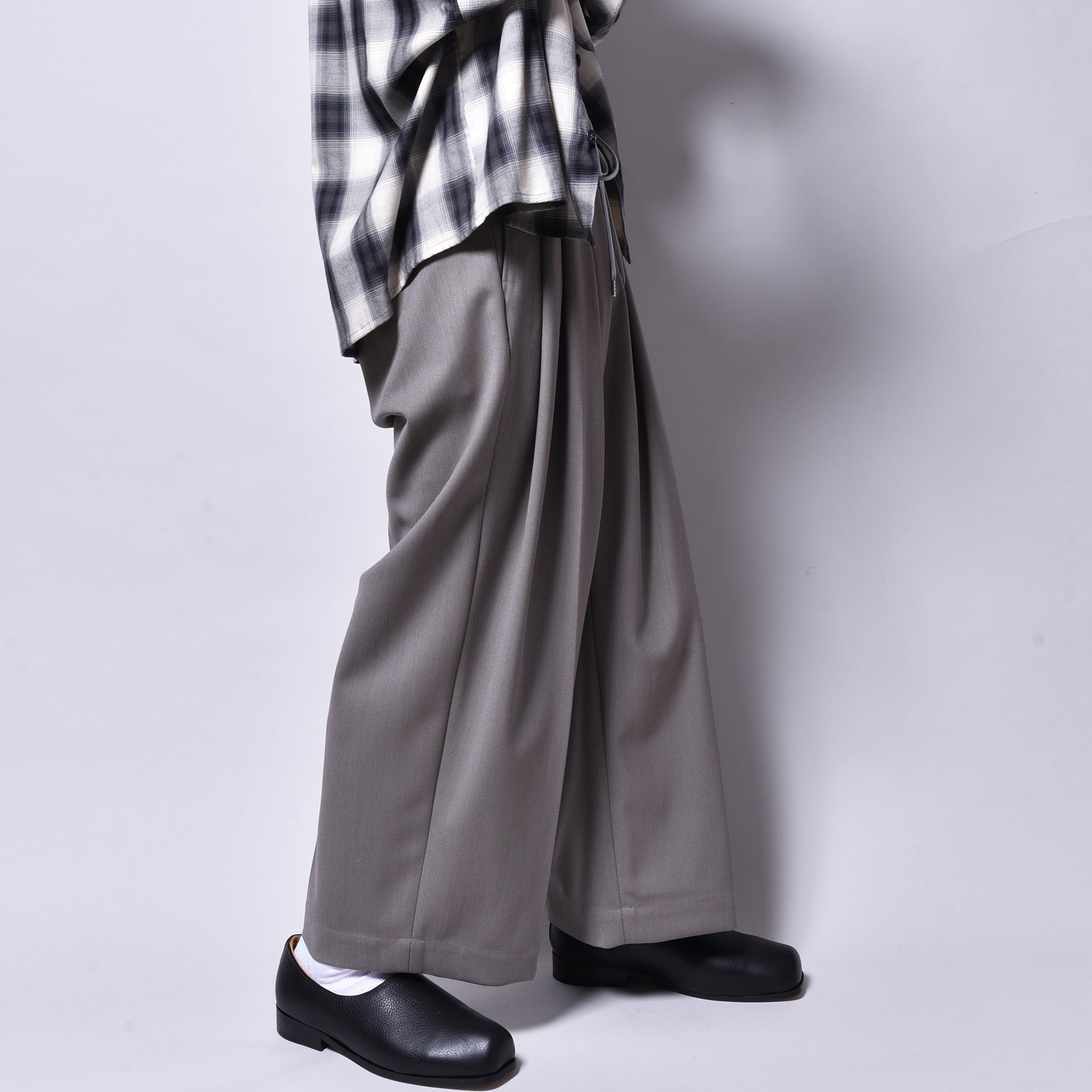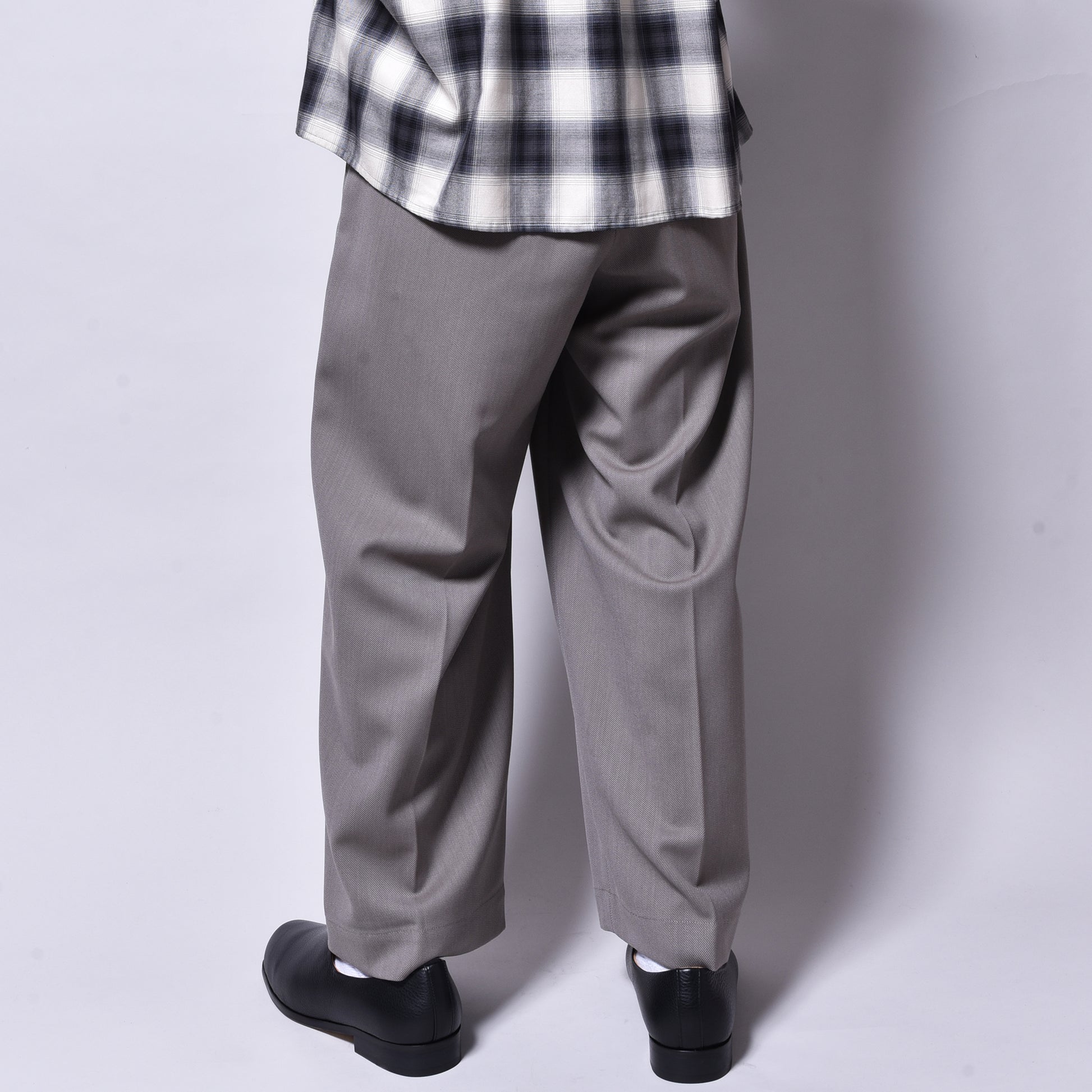 シルエットはrinの長らく続く名作のスリータックスラックスを新たにアップデートしてよりクラシックな風合いに作り上げた1本は幅広いスタイルに愛用頂けるシルエットになります。