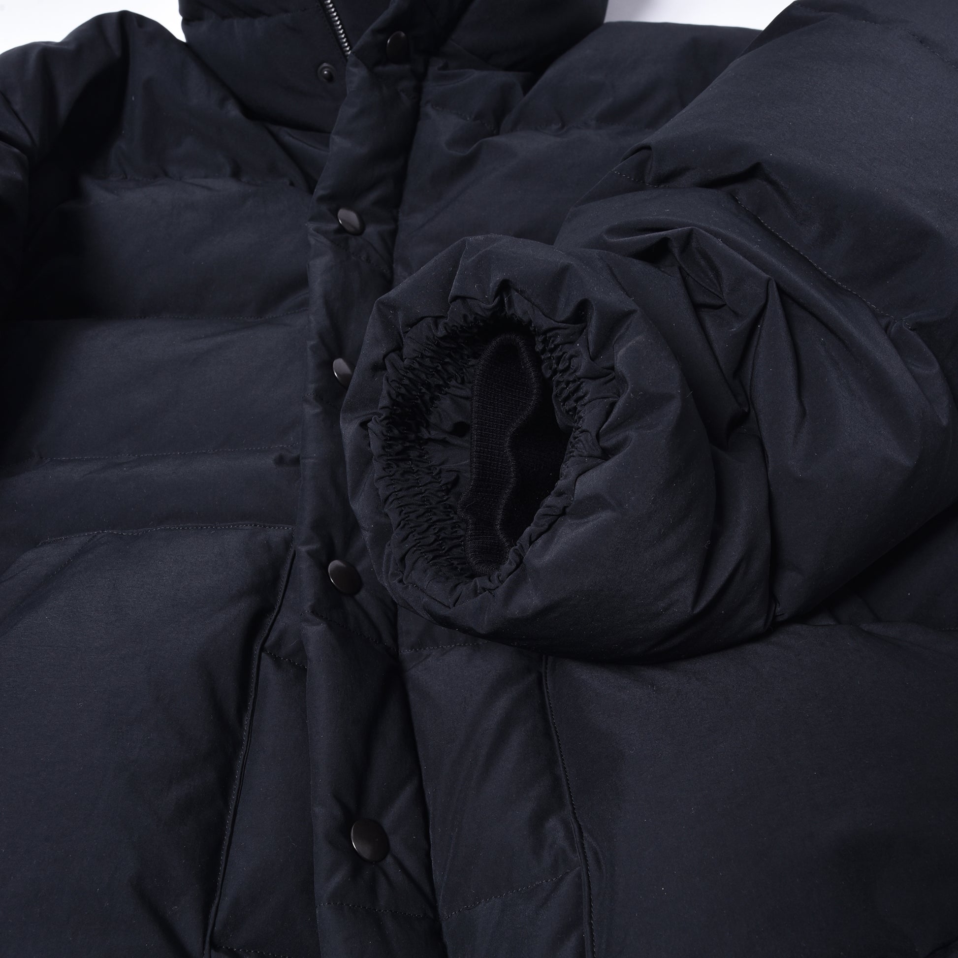 暖かい空気が逃げないように、袖や裾に表に見えないようにリブを入れた仕様。表面ではなく収納性も内側に収縮した仕様になります。