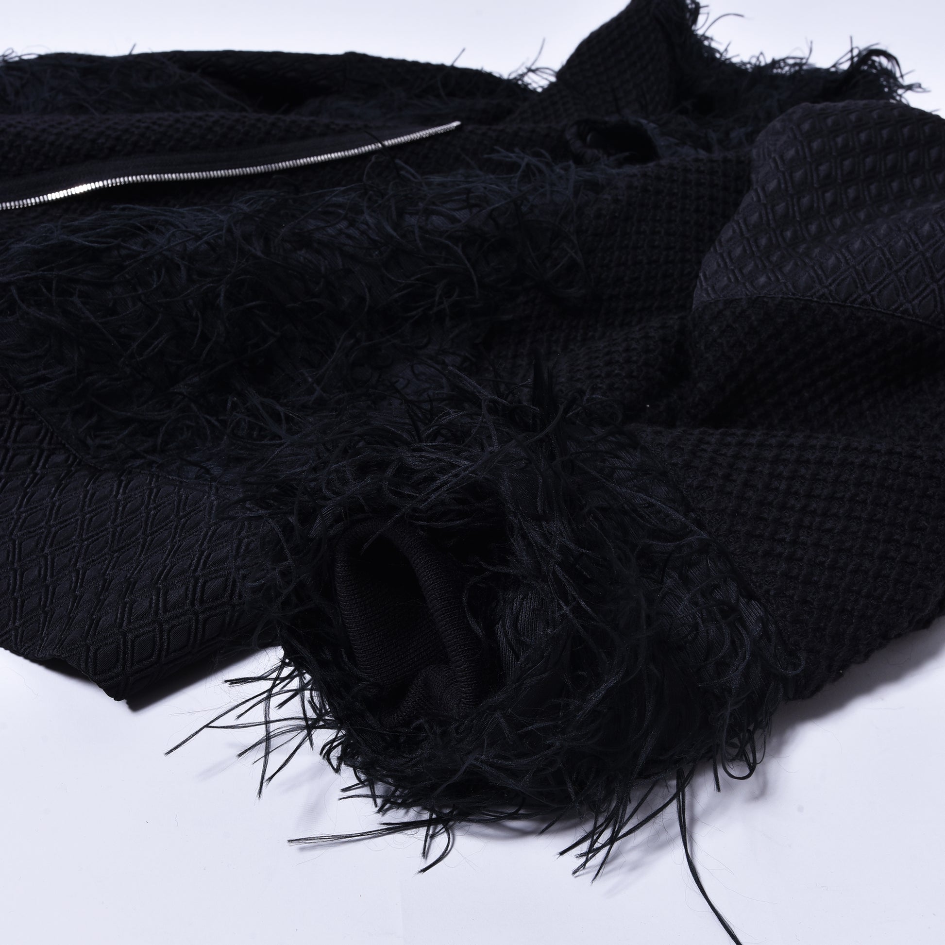 通常の織物と違い横糸をランダムに織り込まずに織り上げることによって毛足の長い毛皮のような雰囲気に織り上げた生地